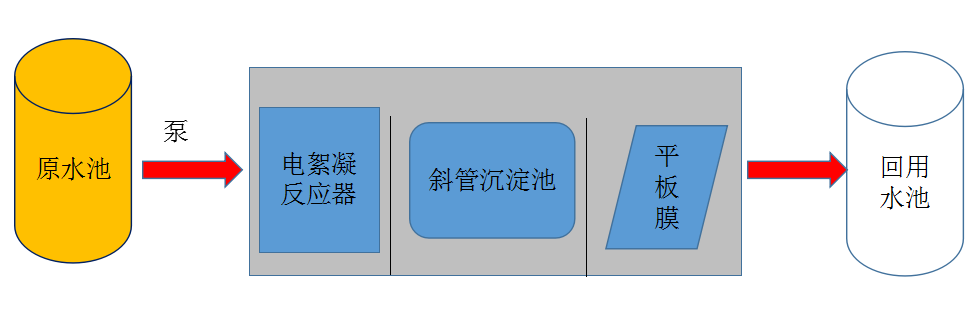 EC含煤廢水電絮凝一體化設(shè)備的流程是廢水經(jīng)原水池沉淀后經(jīng)泵升壓進(jìn)入電絮凝反應(yīng)器,通過絮凝后將小絮體變成大絮體,然后再進(jìn)斜管沉淀池和平板膜,去除水中雜質(zhì)和懸浮物,以達(dá)到廢水排放或回用的目的。